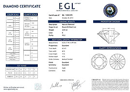 We provide diamond certificates from recognised laboratories such as E.G.L. (European Gemmological Laboratory), I.G.I. (International Gemmological Institute), G.I.A. (Gemmological Institute of America) or H.R.D. (Hoge Raad Voor Diamant).