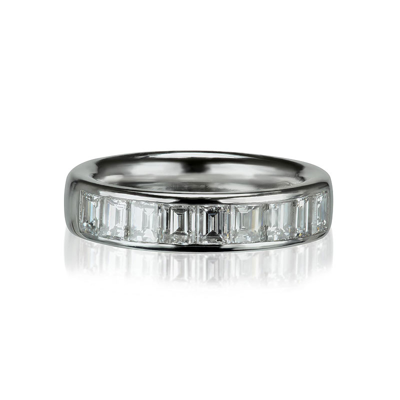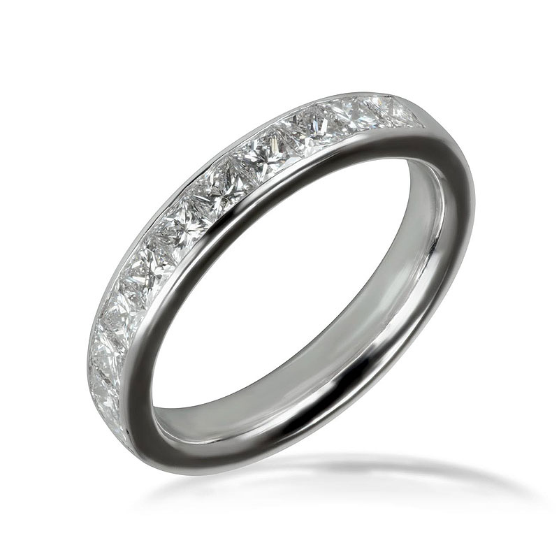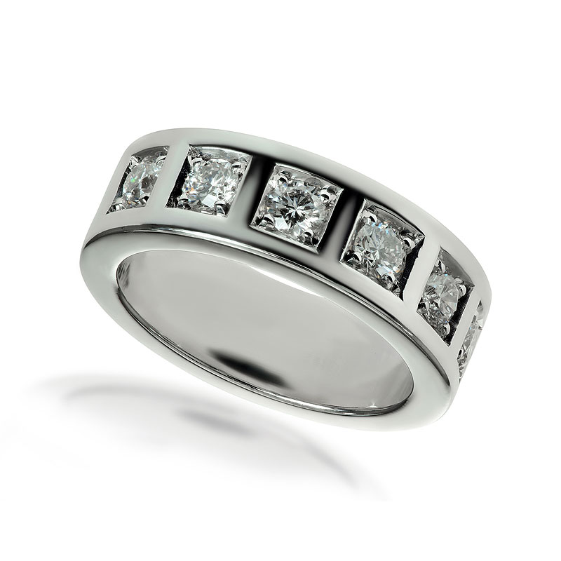 A chunky band loaded with interspaced round diamonds with a square finished setting.