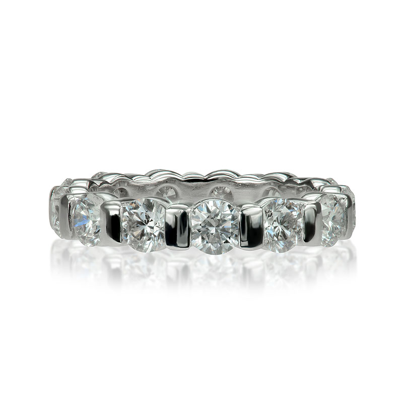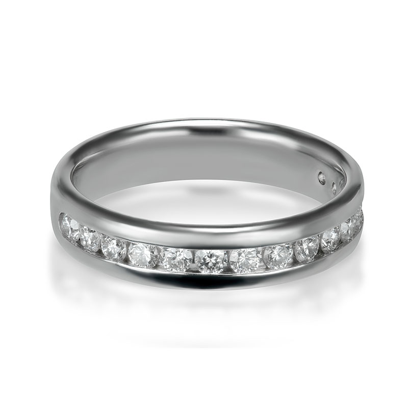 A beautiful eternity ring set half way with round brilliant cut diamonds in a bar setting.
